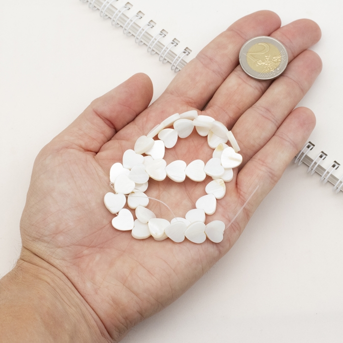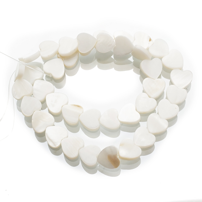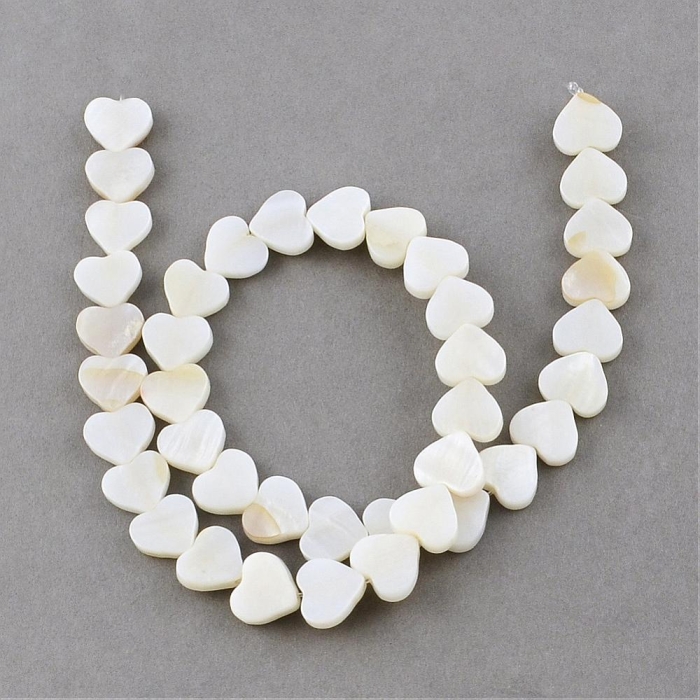 Бусины Натуральный Морской Перламутр Сердце, Слоновая Кость, 10x10~11x3мм, Отверстие 1.5мм, около 38шт/33см/нить, (УТ100014056)