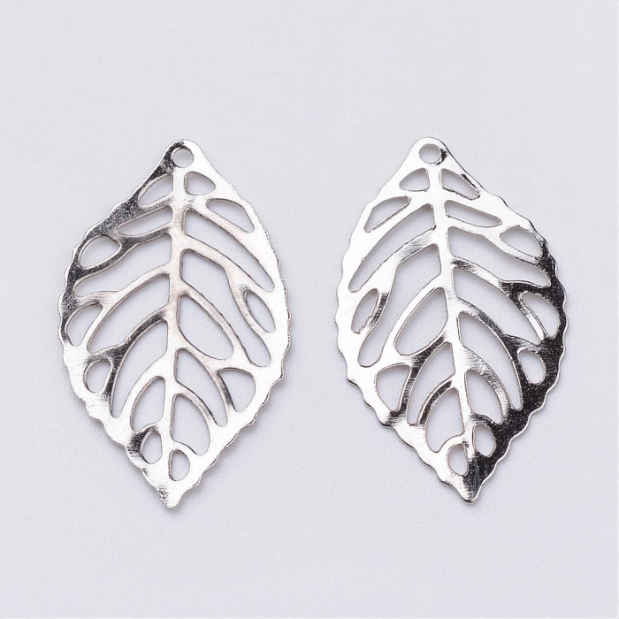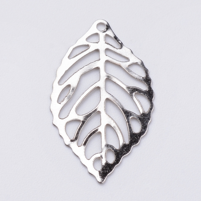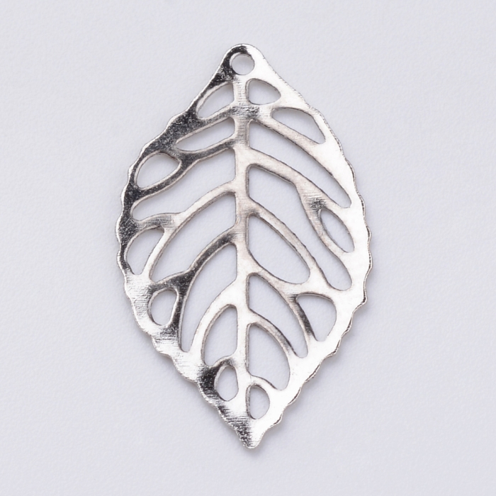 Кулон Лист, Железные, Цвет: Платина, Размер: 23.5x13.5x0.5мм, Отверстие 1мм, (УТ100015000)