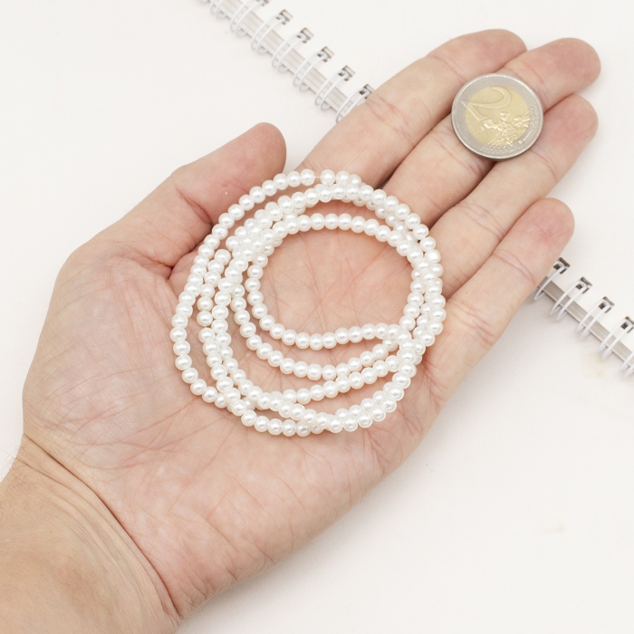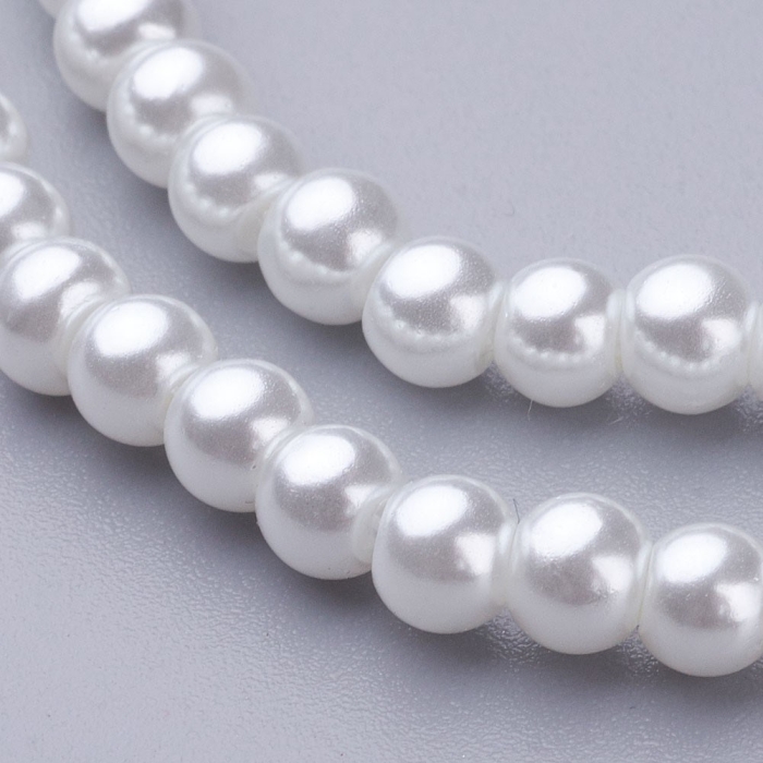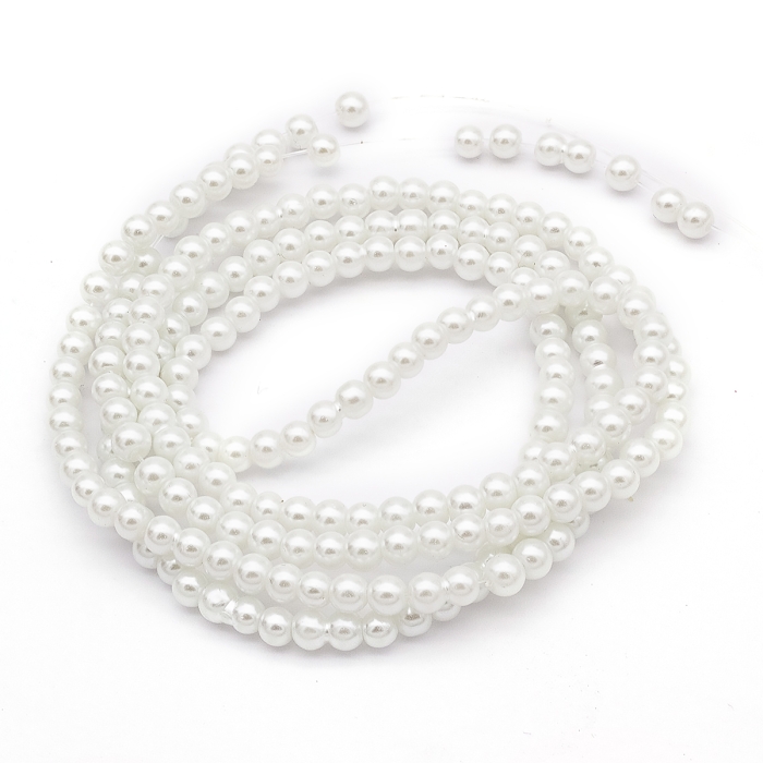 Жемчуг Бусины Стекло, Глянцевые, Круглые, Белый, 4мм, Отв-тие 1мм, около 185шт/75см/нить, (БА000000444)