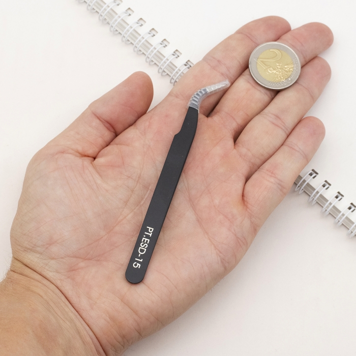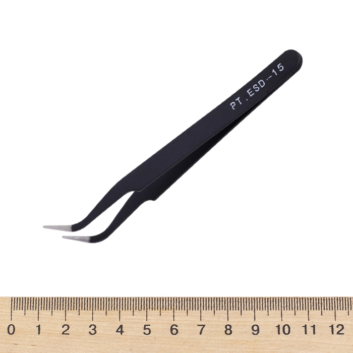 Пинцет Ювелирный из Нержавеющей Стали с Покрытием Антистатик, Цвет: Черный, Размер: 11.2см, (УТ100016196)