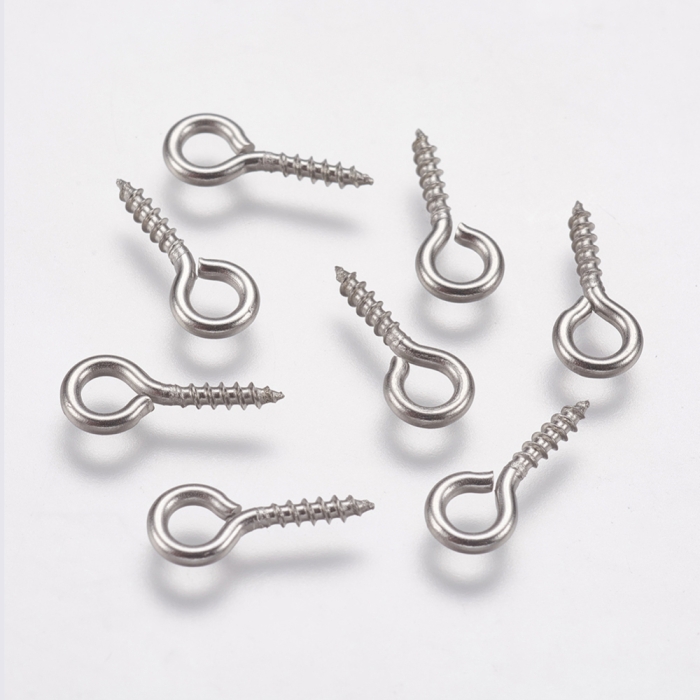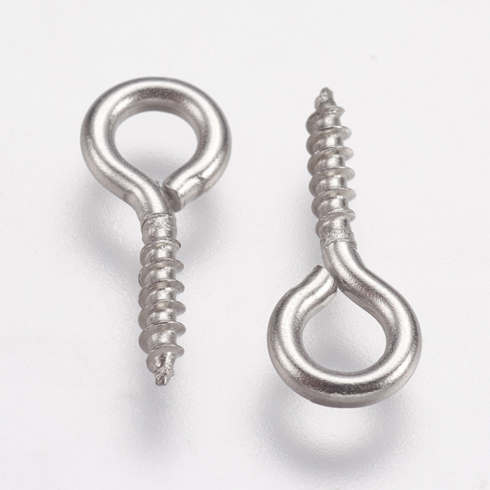 Держатели Винтовые Штифты с Петлей для Бусин с Полуотверстием, Нержавеющая Сталь, 12x5x1мм, Отверстие 2.5мм, (УТ100016322)