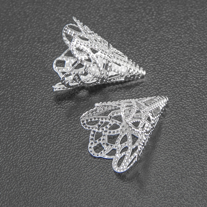 Конус Шапочки для Бусин, Железные, Цвет: Серебро, Размер: 17x20мм, Отверстие 1мм, (УТ100016747)