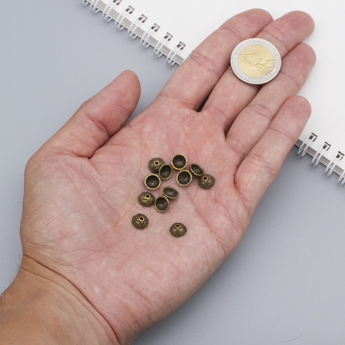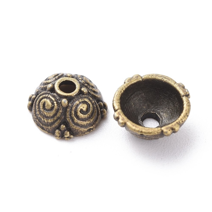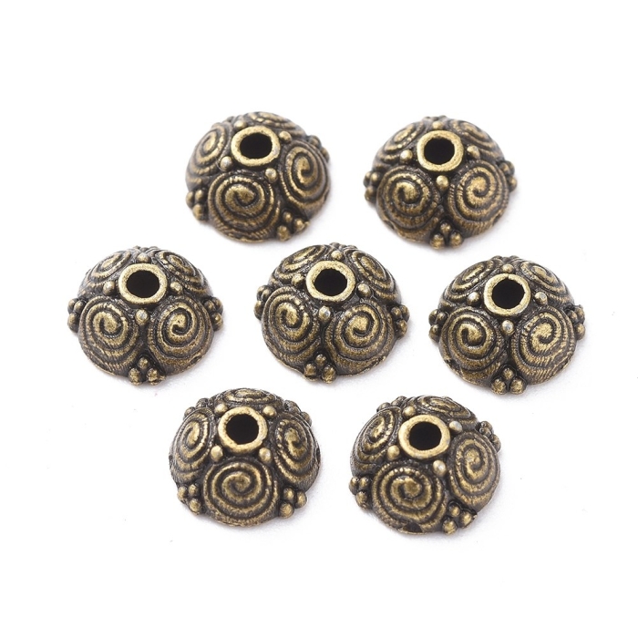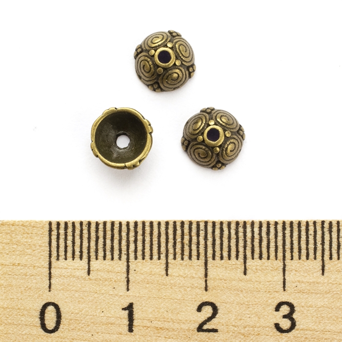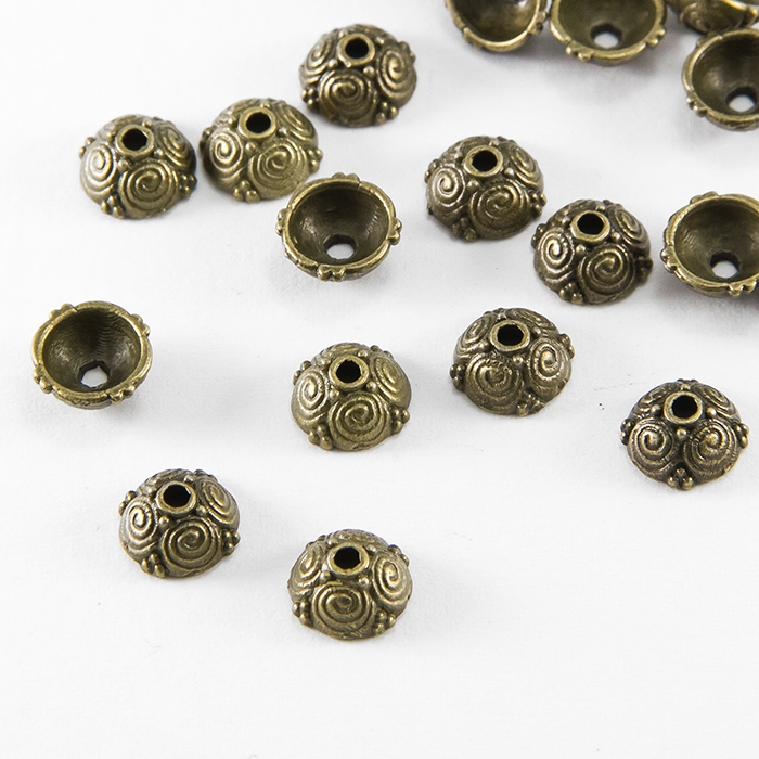 Шапочки для Бусин, Сплав, Круглые, Бронза, 8х8х4.5мм, Отверстие 2мм, 20шт/упаковка, (УТ100016831)