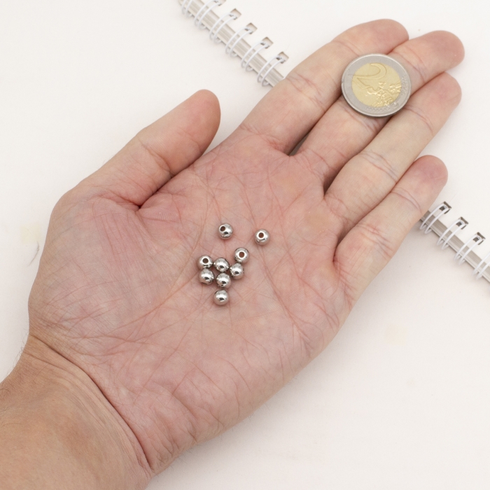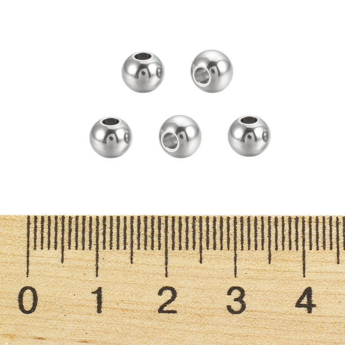 Бусины-разделители, Нержавеющая Сталь, Круглые, Размер: 6х5мм, Отверстие 2мм, (УТ100017220)