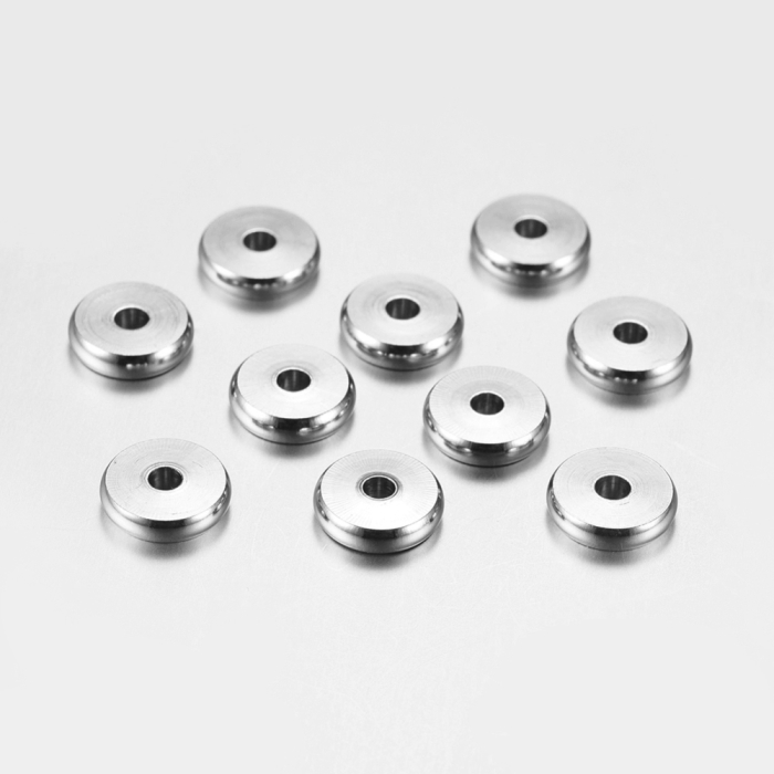 Бусины Зажимные Латунь Стопперы, Кримпы, Рондель, Серебро, 2x3мм, Отверстие 2мм, около 140шт/5г, (УТ0027864)