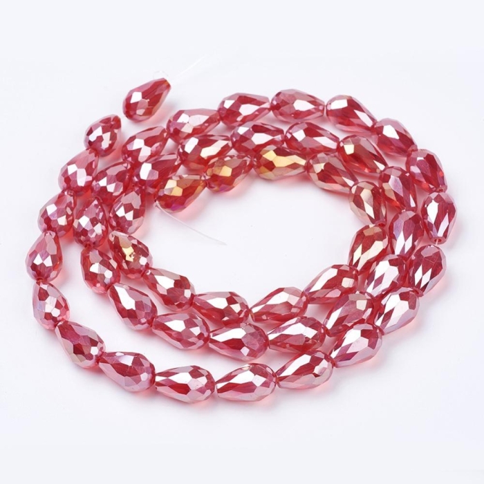 Бусины Гальваника Стекло АВ-Цвет, Граненые, Капля, Цвет: Малиновый, Размер: 12х8мм, Отверстие 1мм, около 60шт/72см/нить, (УТ100017249)