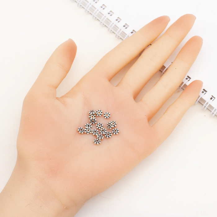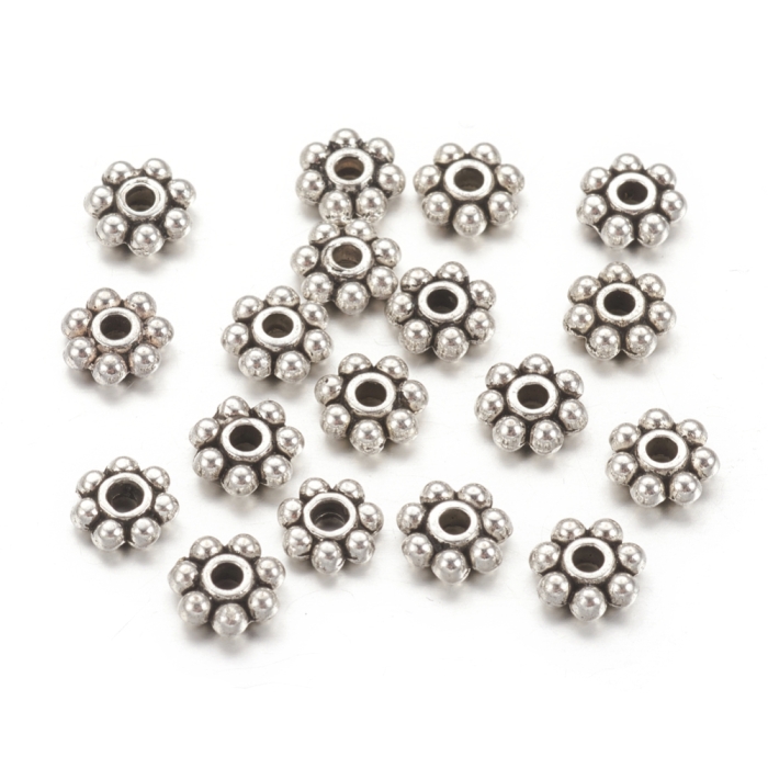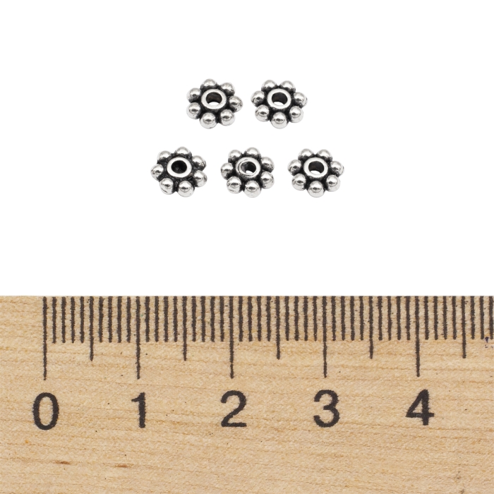 Бусины-Разделители, Бижутерный Сплав, Цветок, Цвет: Античное Серебро, Размер: 6х2мм, Отверстие 1.5мм, (УТ100017347)