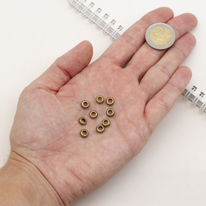 Бусины-Разделители, Бижутерный Сплав, Круглые Плоские, Цвет: Бронза, Размер: 7х3мм, Отверстие 4мм, (УТ100017435)