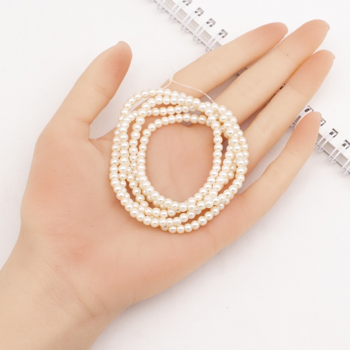 Жемчуг Бусины Стеклянные Глянцевые Круглые, Античный Белый, 4-5мм, Отверстие 1мм, около 200шт/78см/нить, (УТ100017655)