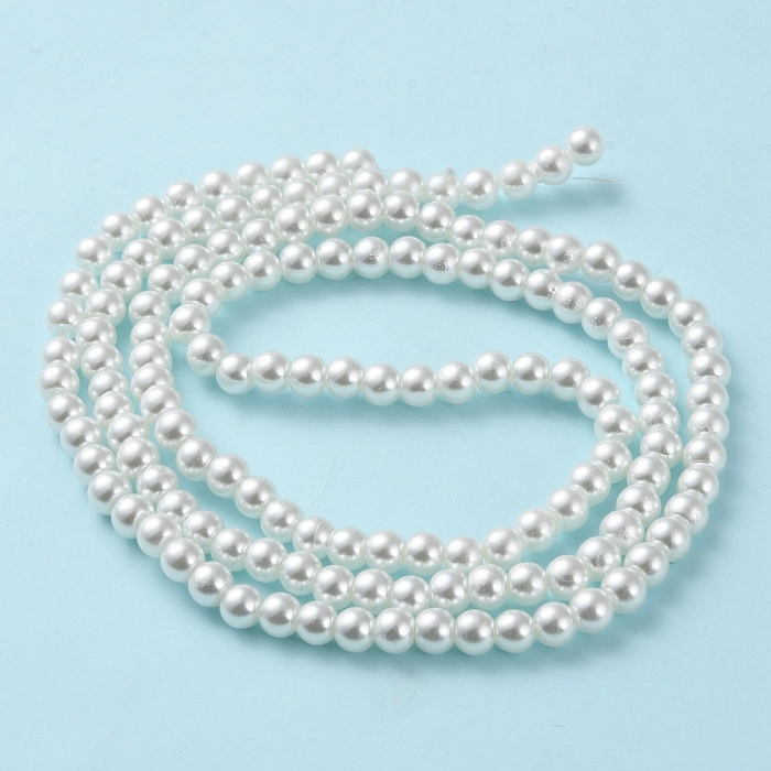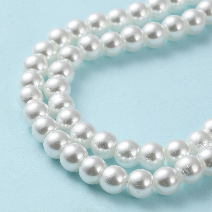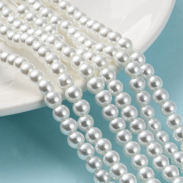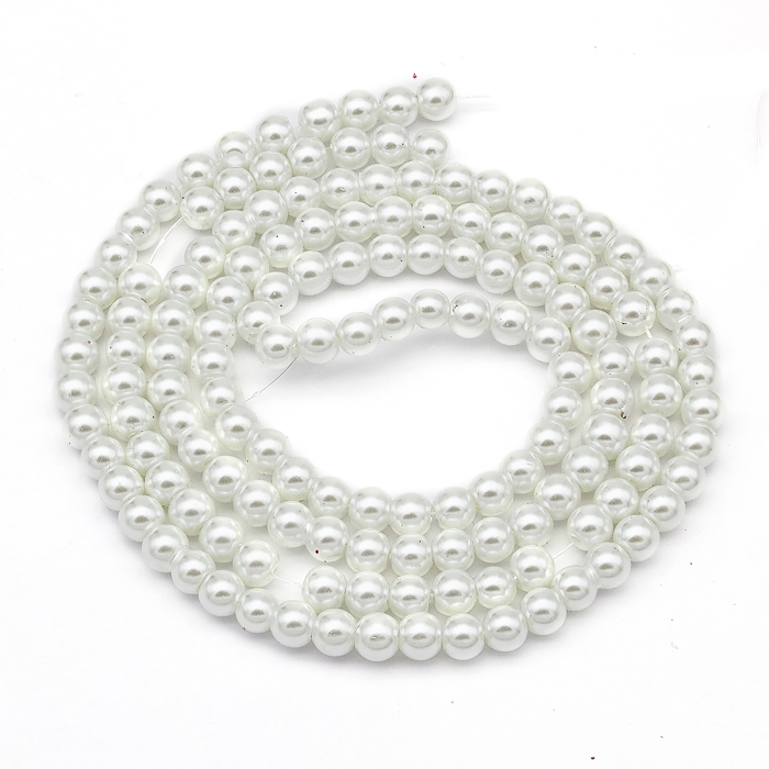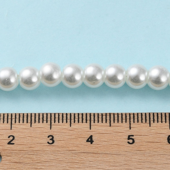 Жемчуг Бусины Стеклянные Круглые Глянцевые, Белый, 6-7мм, Отверстие 1мм, около 125шт/75см/нить, (УТ100017658)