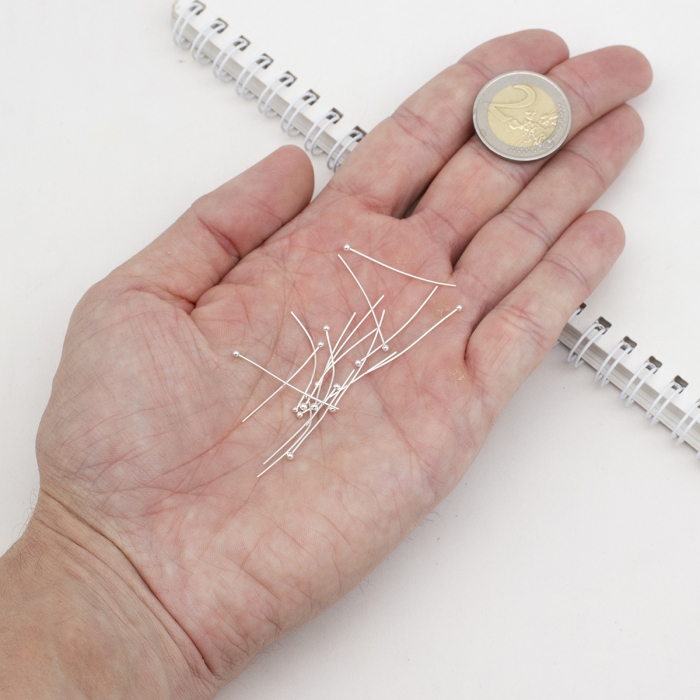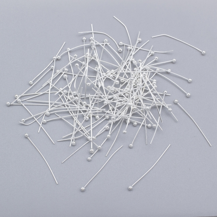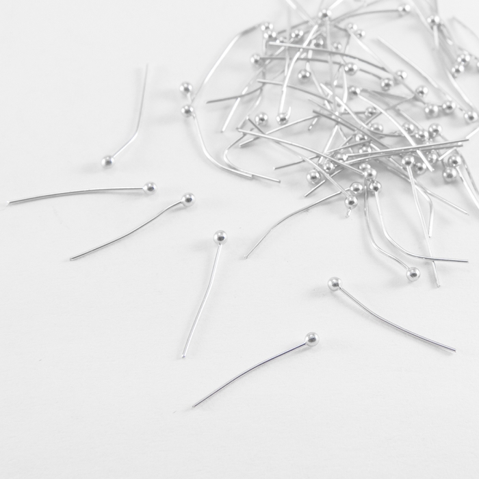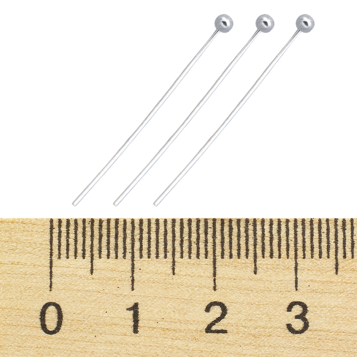 Пины с Шариком Латунь, Серебро, 30х0.5мм, Шарик 2мм, (УТ100017708)