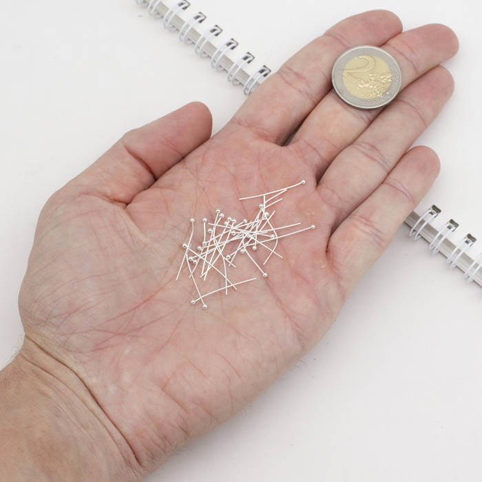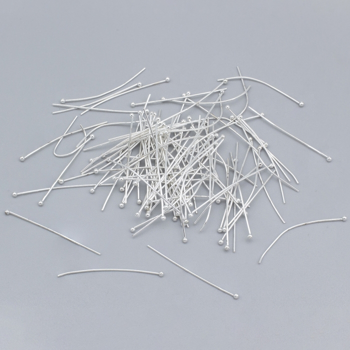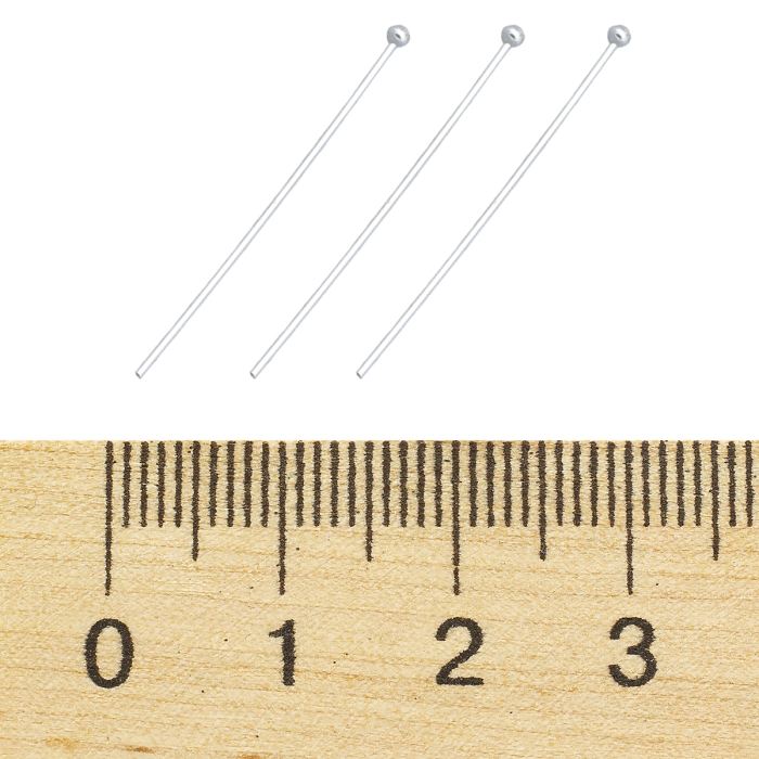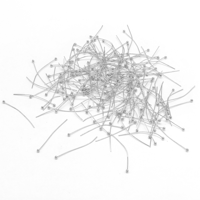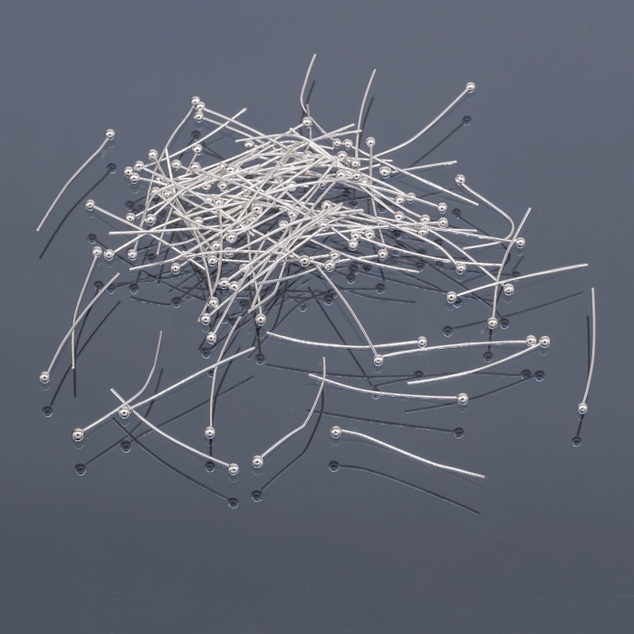 Пины с Шариком Латунь, Серебро, 25х0.5мм, Шарик 2мм, (УТ100017715)