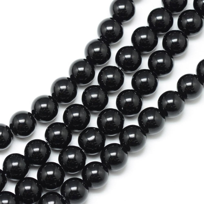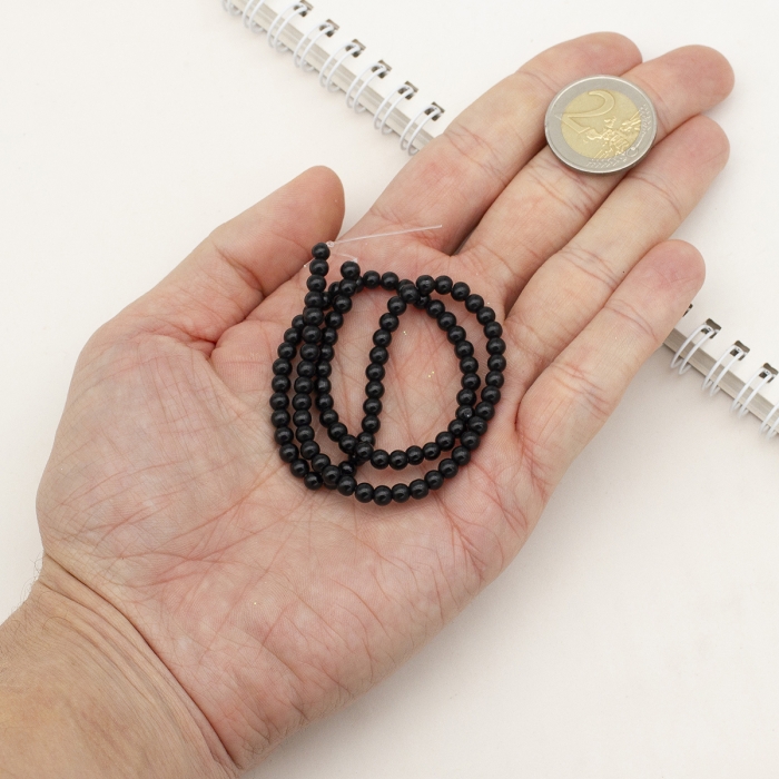 Бусины Синтетический Шунгит, Круглые, Цвет: Черный, Диаметр: 4-5мм, Отв. 1мм, около 90шт/38см/нить, (УТ100017972)