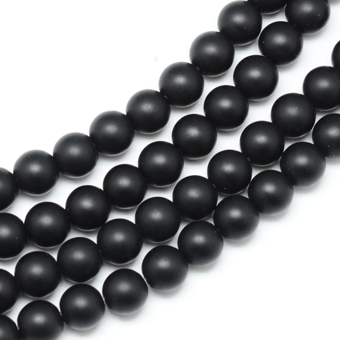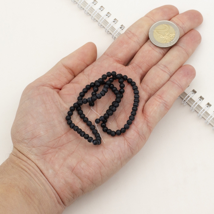 Бусины Синтетический Шунгит Морозный Стиль, Круглые, Цвет: Черный, Диаметр: 4-5мм, Отв. 1мм, около 90шт/38см/нить, (УТ100017974)