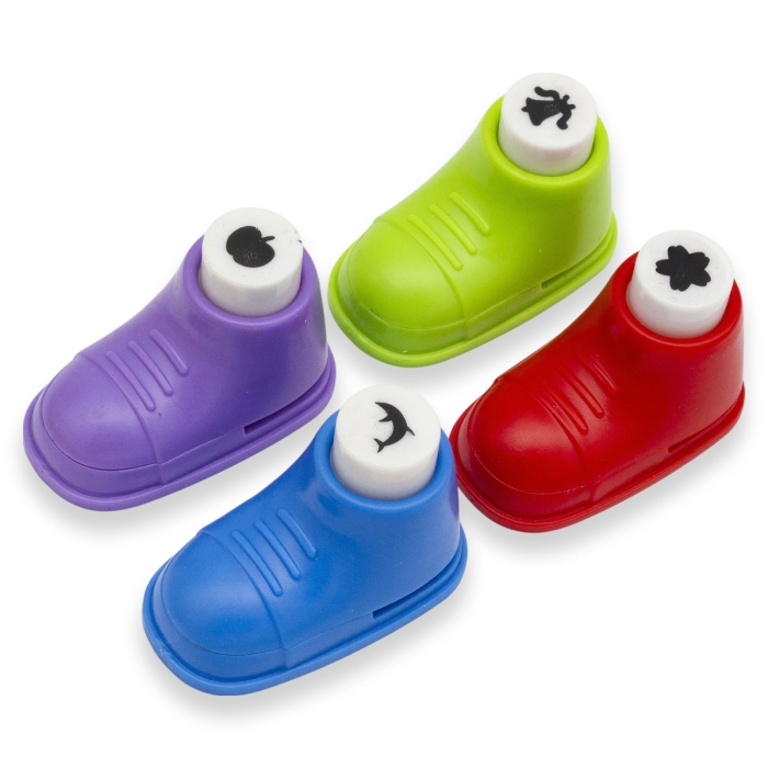 Компостер Фигурный "Кнопка-Ботинок", Блистер, 4шт/набор, Микс, Размер Компостера: Длина 5см, Ширина 3см, Высота 3.2см, Вырубка: 1см, (УТ100018102)