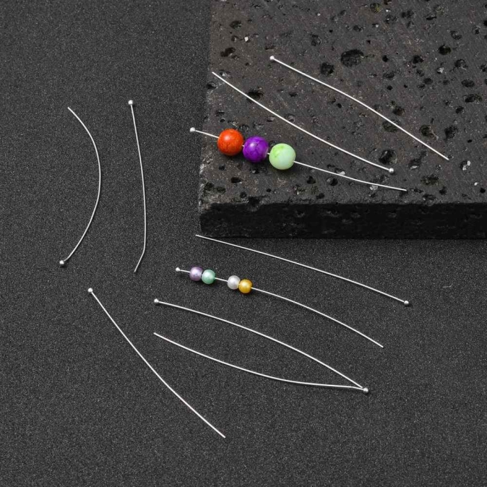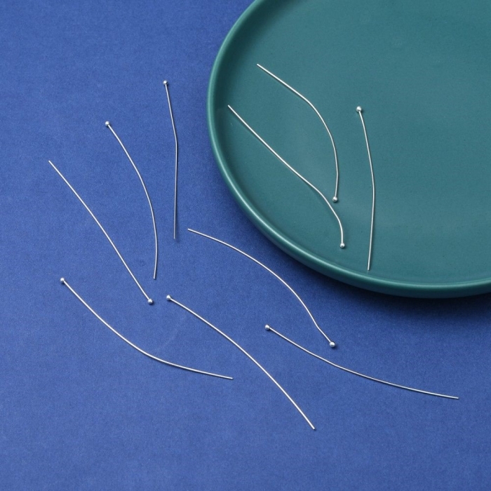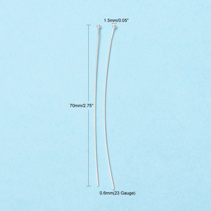 Пины с Шариком, Латунь, Цвет: Серебро, Размер: 70х0.6мм, Шарик 1.5мм, (УТ100018163)