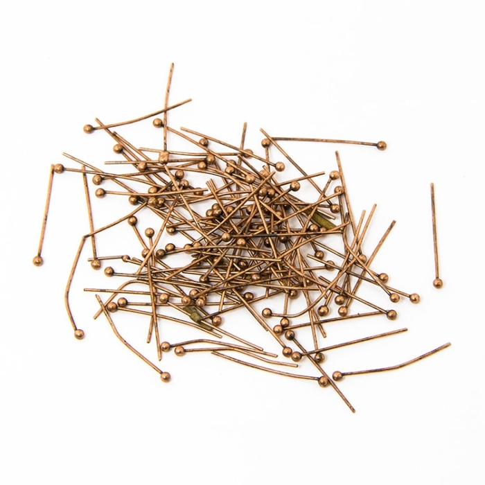 Пины с Шариком, Латунь, Цвет: Медь, Размер: 18х0.5мм, Шарик 1.5мм, (УТ100018330)