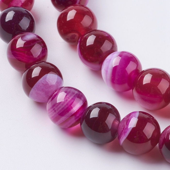 Бусины Натуральный Полосатый Агат, Круглые, Сиреневый, Размер: 10мм, Отв. 1.2мм, около 38шт/38см/нить, (УТ100019220)