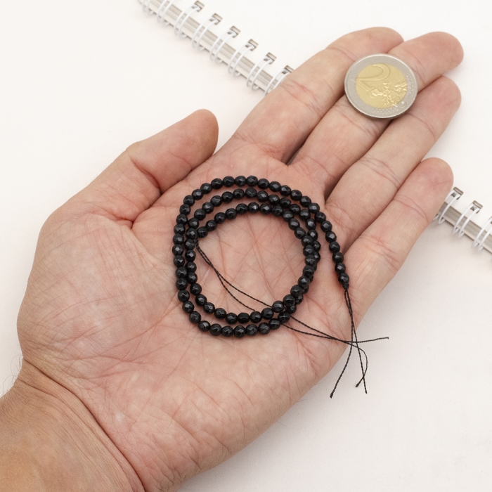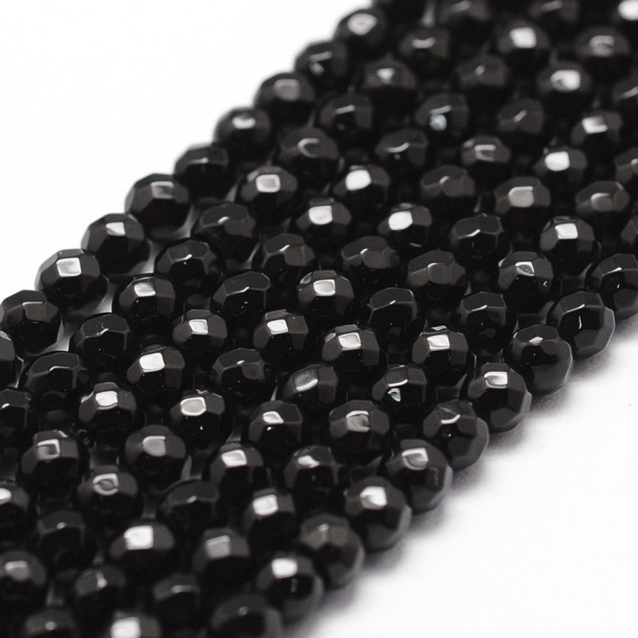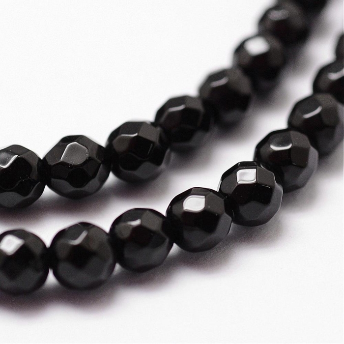 Бусины Натуральный Черный Агат, Круглые, Граненые, Класс А, 4мм, Отв. 1мм, около 90шт/37см/нить, (УТ100019276)