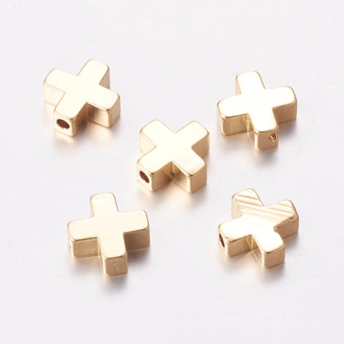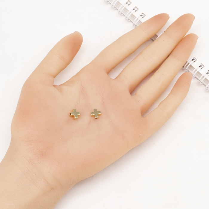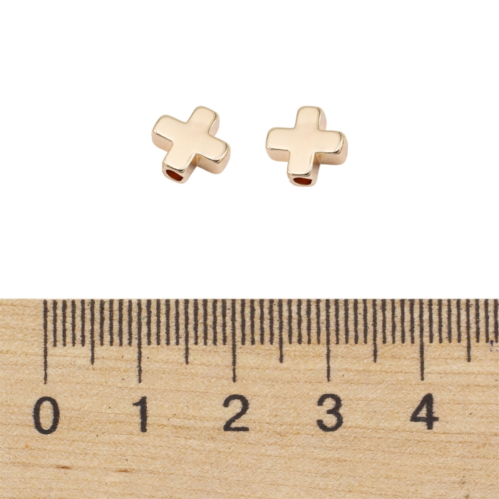 Бусины Латунь Крест, Покрытие Золото 18К, 8х8х3мм, Отверстие 1.4мм, (УТ100019652)