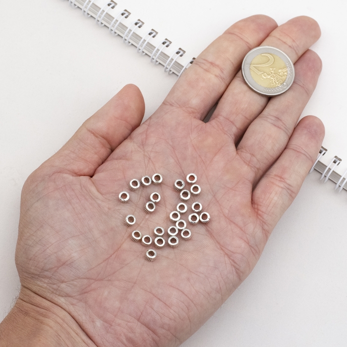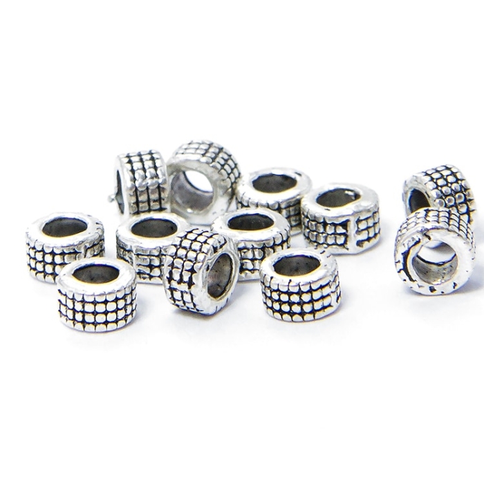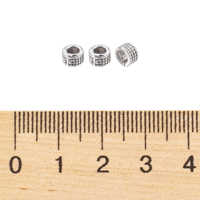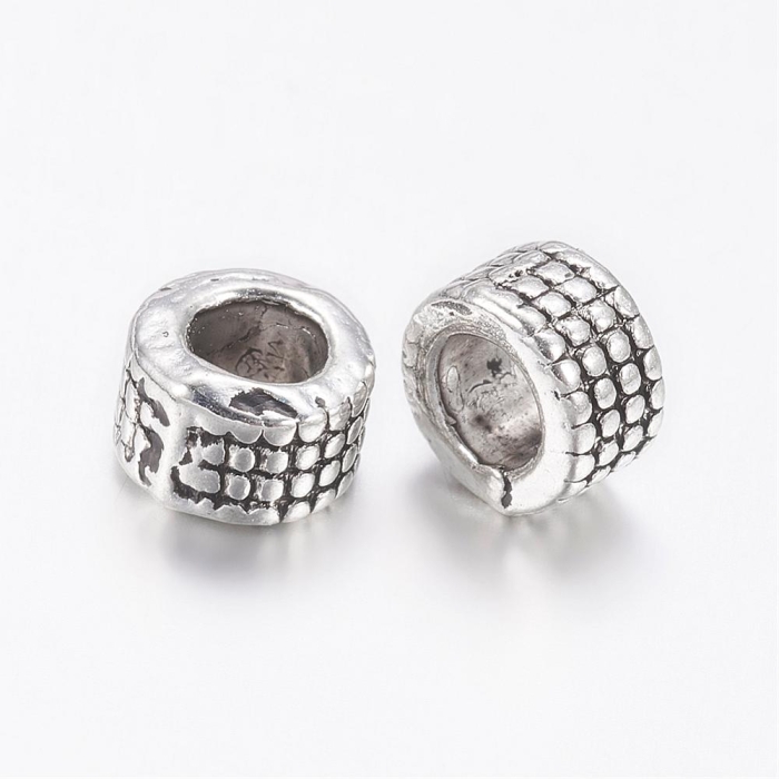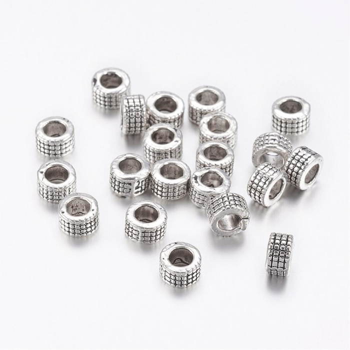 Бусины-Разделители Бижутерный Сплав Тибетский Стиль Круглые Плоские Колонка, Античное Серебро, 5х3мм, Отверстие 3мм, (УТ100021063)