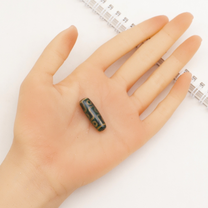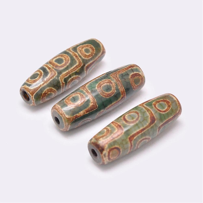 Бусины Натуральный Агат Дзи, 9 Глаз, Рис, Окрашенные, Цвет: Оливковый, Размер: 29-30х9-11мм, Отверстие 2.5-3мм, (УТ100021456)
