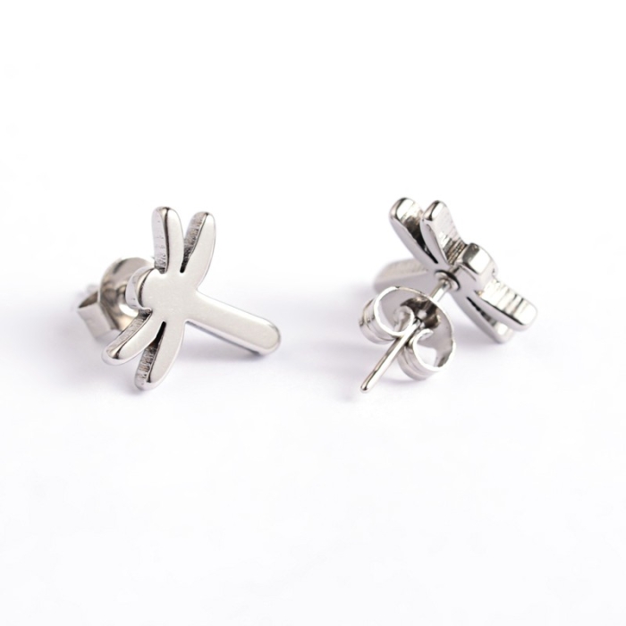 Серьги Пусеты, Нержавеющая Сталь, Стрекоза, Размер: 11x11.5мм, Штифт: 0.7мм, (УТ100022251)