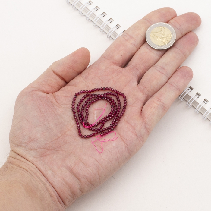 Бусины Натуральный Гранат Круглые Граненые Класс АА, 2мм, Отверстие 0.5мм, около 190шт/37см/нить, (УТ100022910)