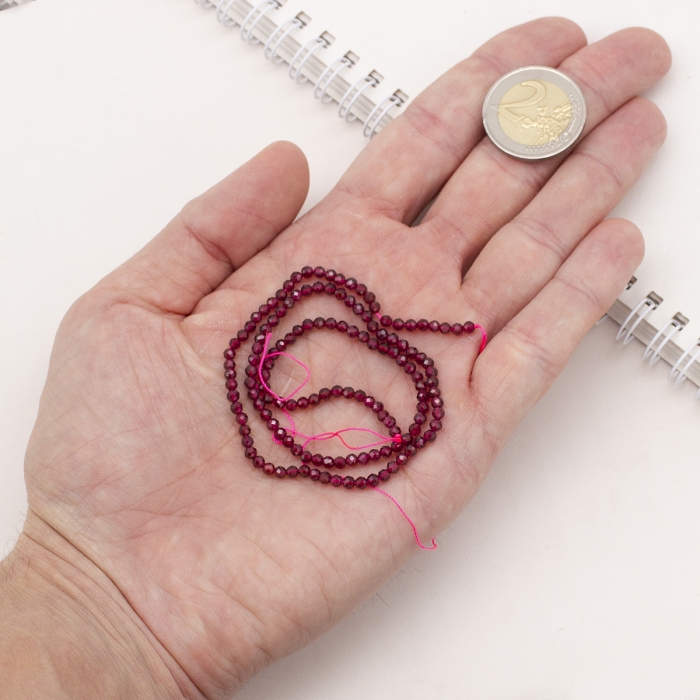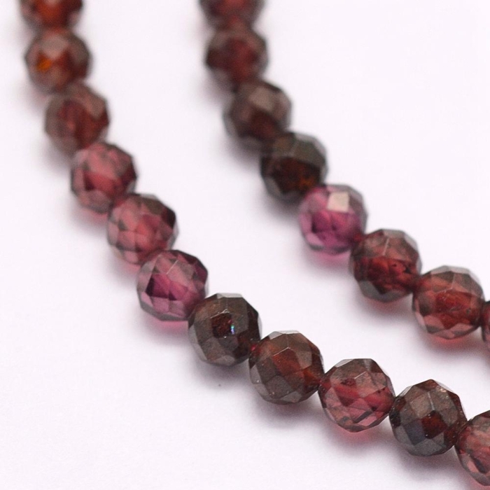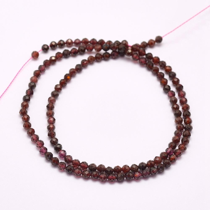 Бусины Натуральный Гранат Круглые Граненые, 3мм, Отверстие 0.5мм, около 125шт/37.5см/нить, (УТ100022912)