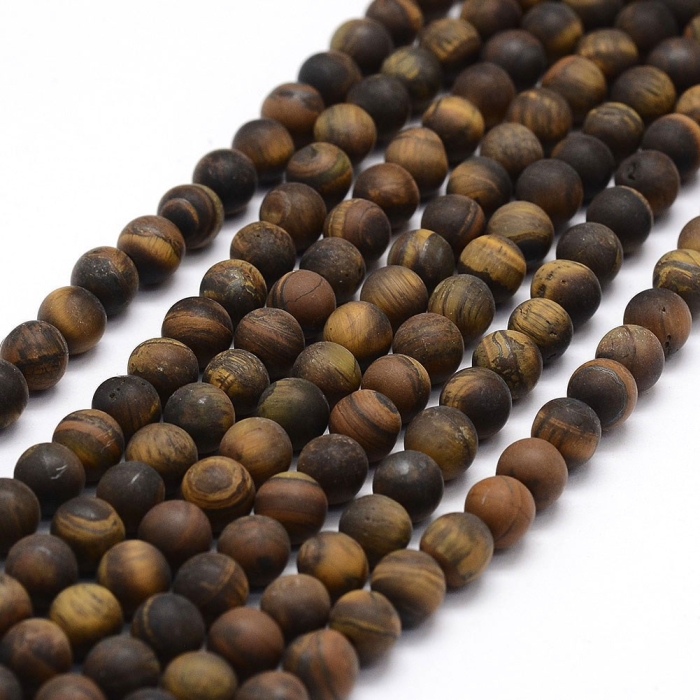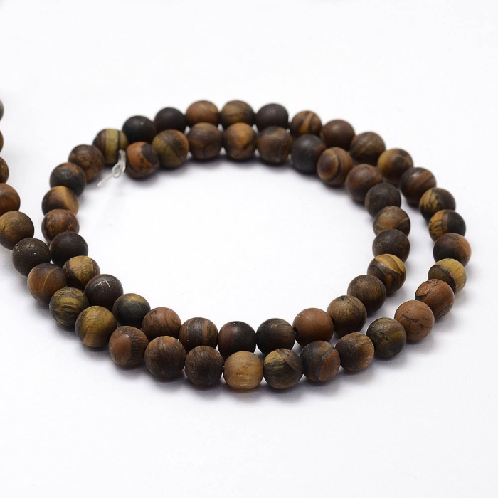 Бусины Натуральный Тигровый Глаз Круглые Матовые, 8мм, Отверстие 1мм, около 43шт/36см/нить, (УТ100011730)