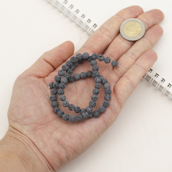 Бусины Натуральная Лава Круглые Нешлифованные, Серые, 6мм, Отверстие 1мм, около 58шт/37см/нить, (УТ100023114)