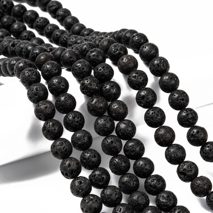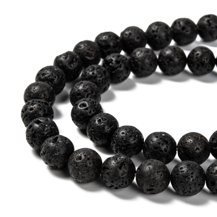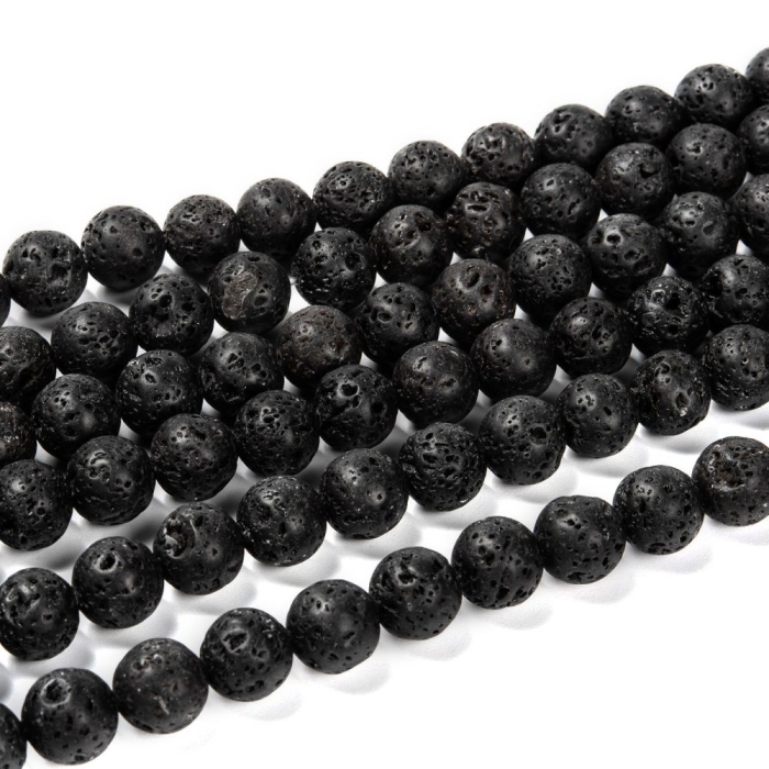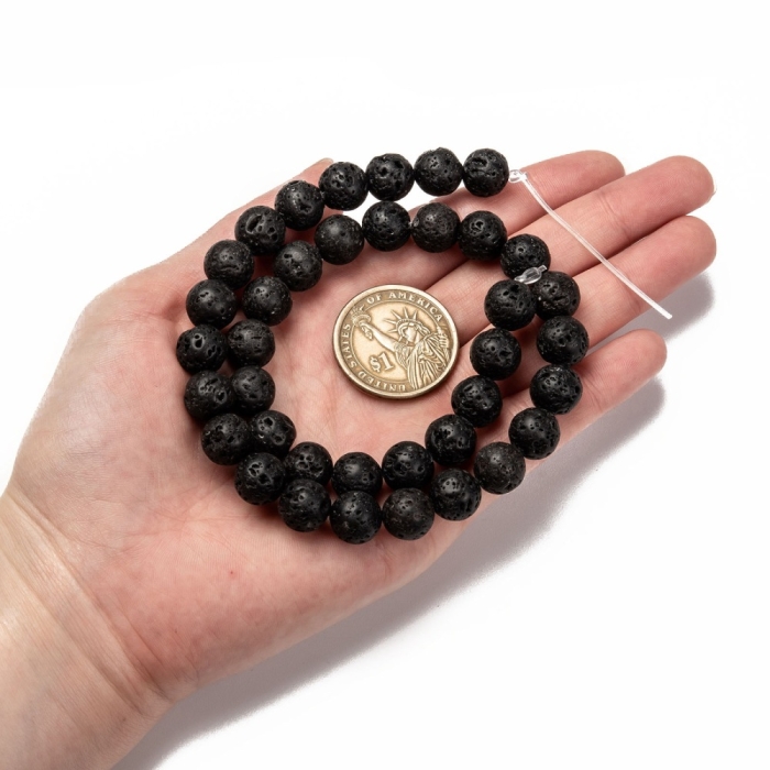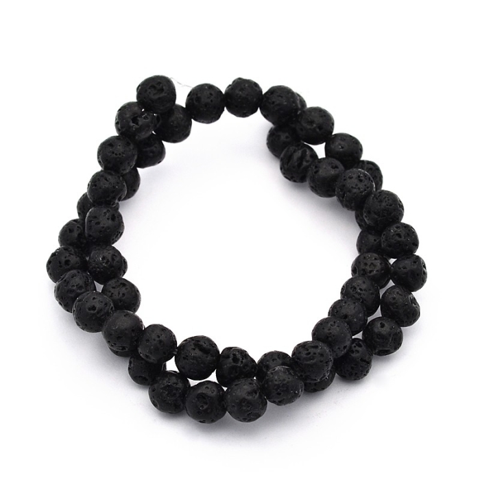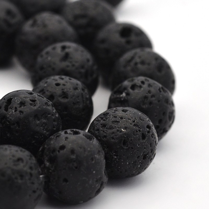 Бусины Натуральная Лава Круглые, Черный, 10мм, Отверстие 1мм, около 38шт/38см/нить, (УТ100023327)