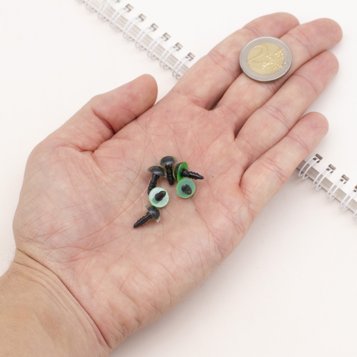 Глазки с Фиксатором и Штифтом, для Игрушек, Круглые, Цвет: Зеленый, Размер: 10мм, (УТ100023557)Упаковка: