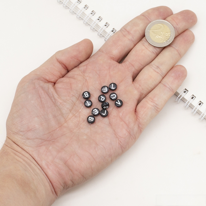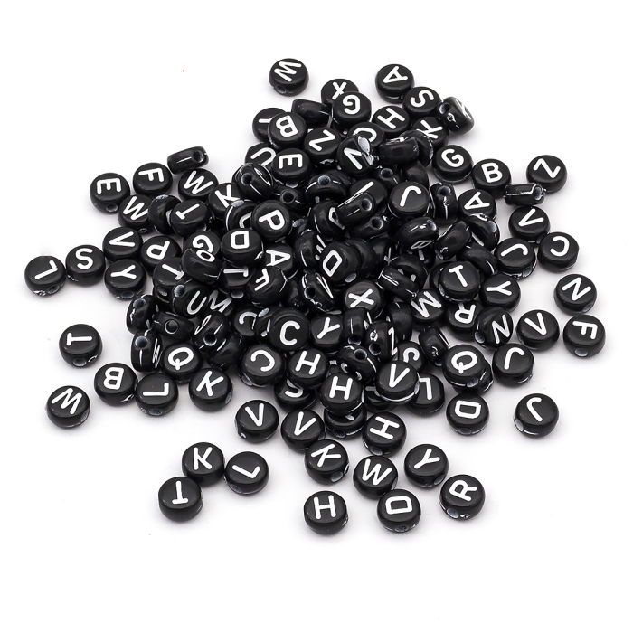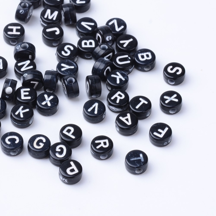 Бусины Акриловые Буквы Крафтовый Стиль, Черные, 6-7х3.5-4мм, Отверстие 2мм, около 340шт/50г, (УТ100024794)