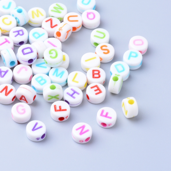 Бусины Акрил Буквы, Крафт Стиль, Микс, 6-7х3.5-4мм, Отверстие 2мм, около 340шт/50г, (УТ100024799)