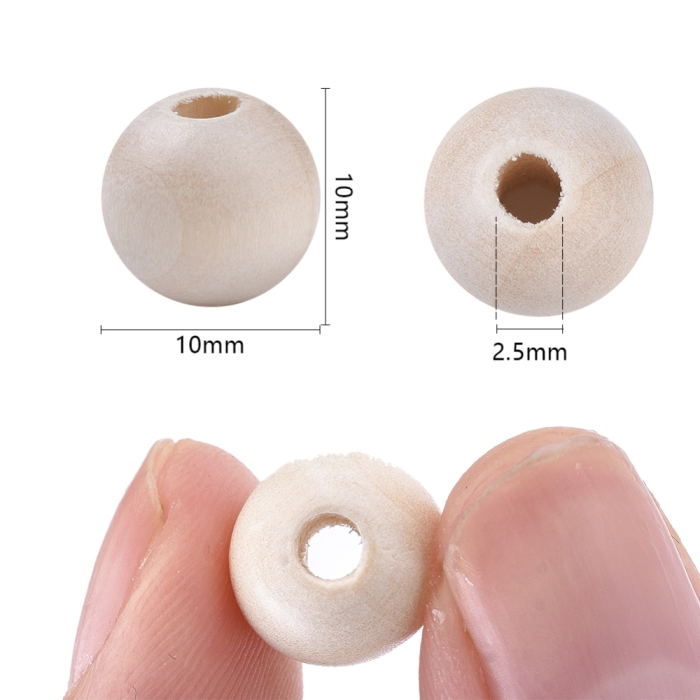 Бусины Дерево Круглые, Цвет: Белый, Размер: 10мм, Отв-тие 2.5мм, (УТ100025006)