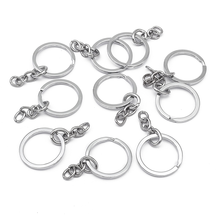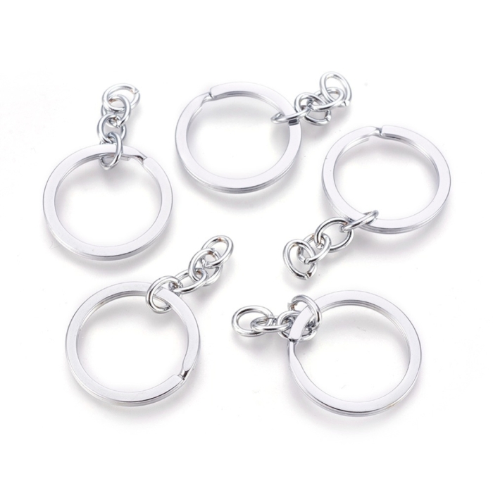 Кольцо Замочек из Сплава с Цепочкой для Брелоков и Ключей, Платина, 28х3мм, Внутренний Диаметр 22мм, (УТ100025089)