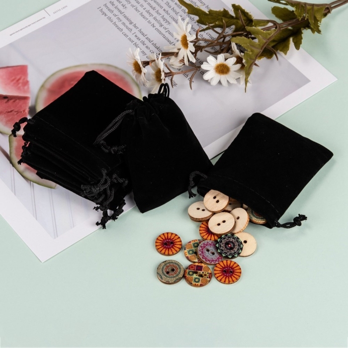 Подарочный Мешочек из Бархата с Кулиской, Черный, 9х7см, (УТ100025255)Упаковка: