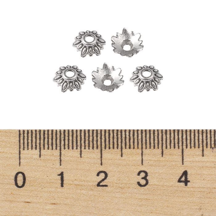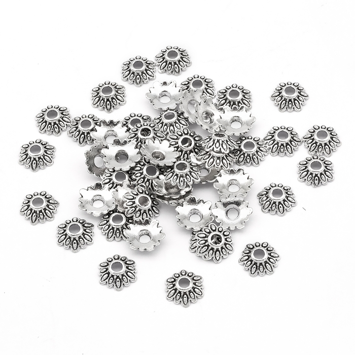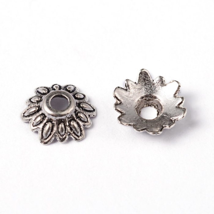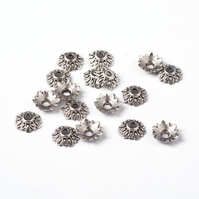 Шапочки для Бусин из Сплава Тибетский Стиль Цветок, Античное Серебро, 8х2.5мм, Отверстие 2мм, (УТ100026201)