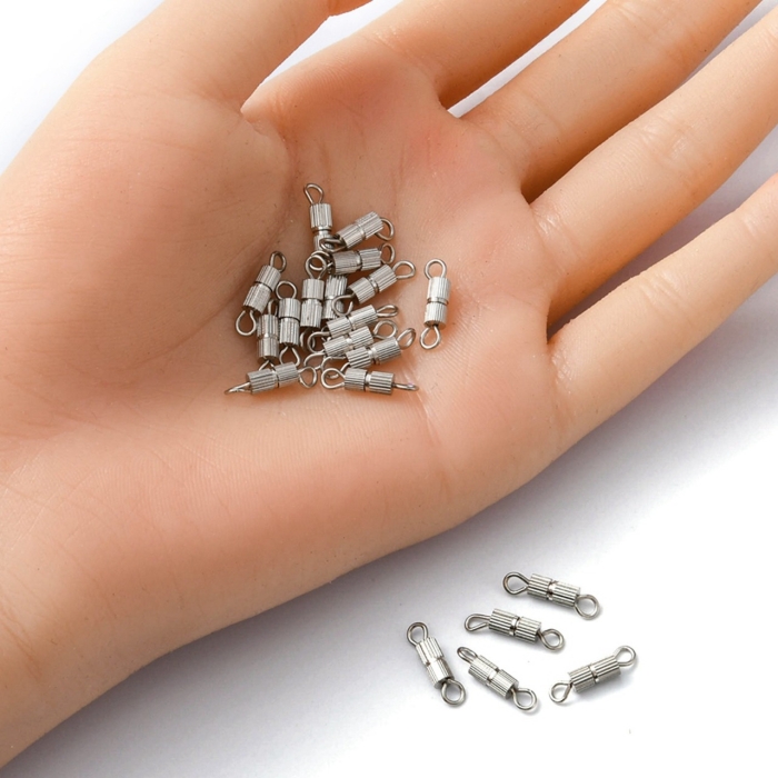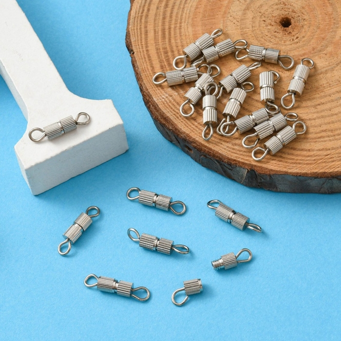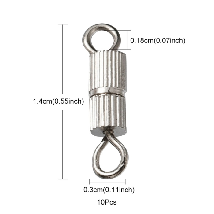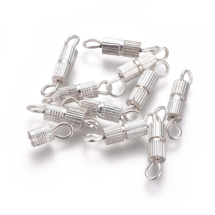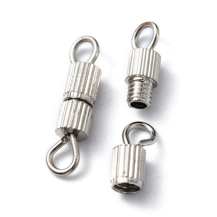 Застежка Закручивающаяся Винтовая Латунь, Серебро, Длина 14мм, Застежка 7х3мм, Отверстие 1.8мм, (УТ100026224)