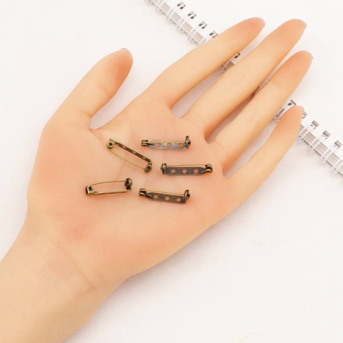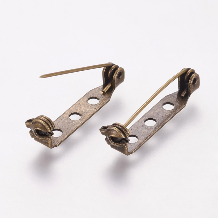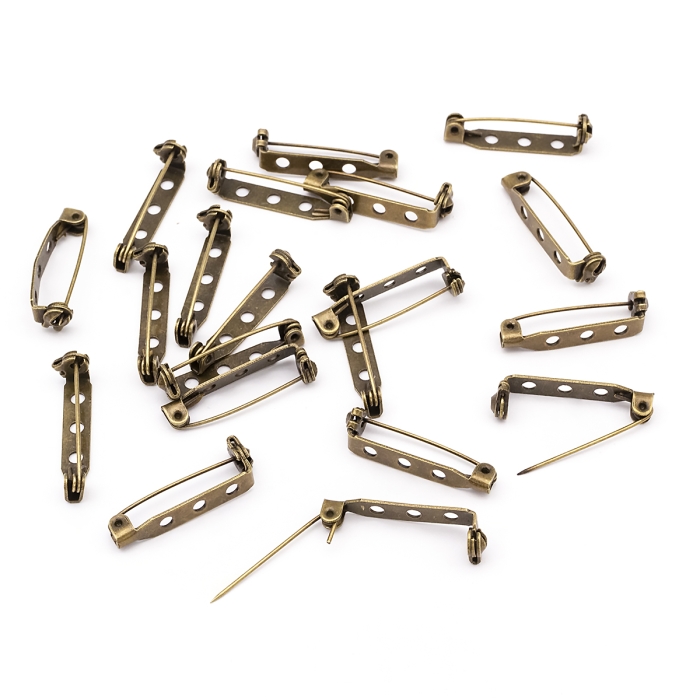 Основа под Брошь Железная, Булавка, с 2-мя Отверстиями, Бронза, 25х5мм, Отверстие 2мм, (УТ100012767)