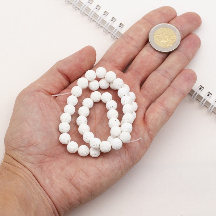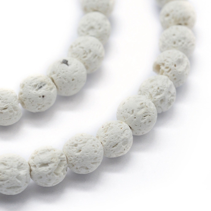Бусины Натуральная Лава Круглые, Белые, 8мм, Отверстие 1мм, около 46шт/36.5см/нить, (УТ100026397)