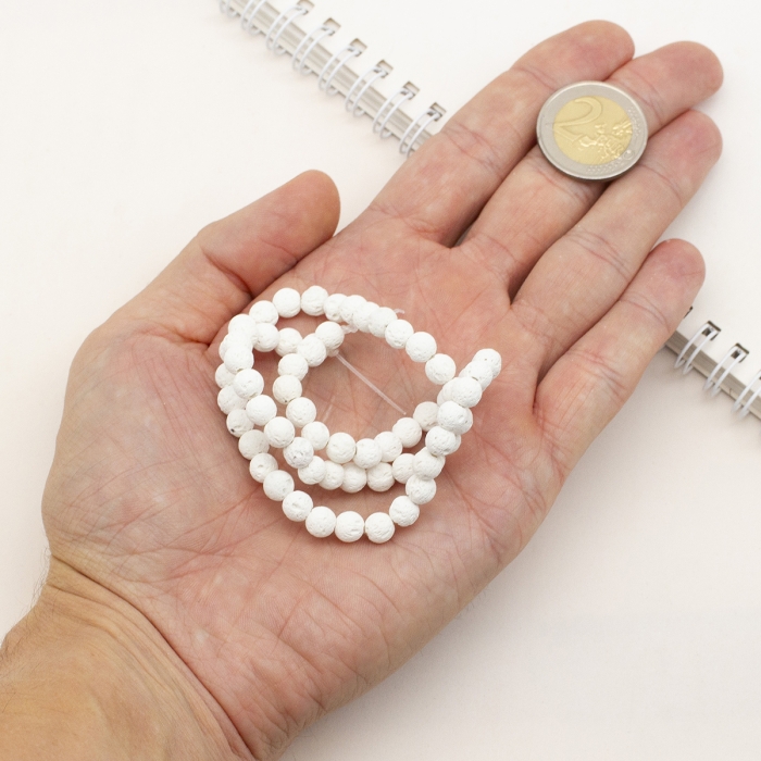 Бусины Натуральная Лава Круглые, Белые, 6мм, Отверстие 1мм, около 60шт/36см/нить, (УТ100026398)