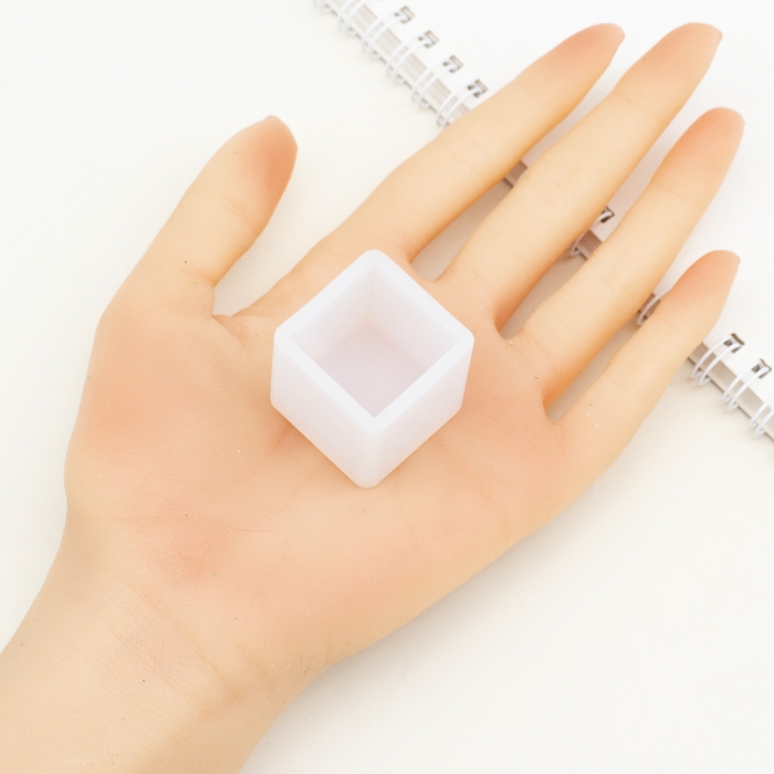 Силиконовая форма для изготовления изделий из эпоксидной смолы, из УФ смолы в форме куба.