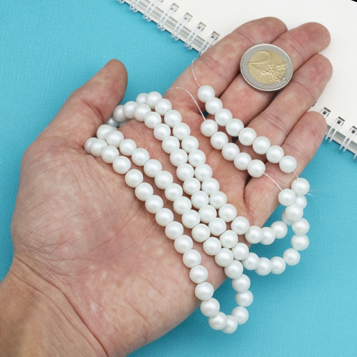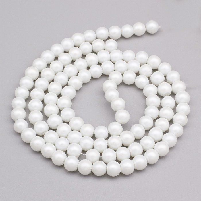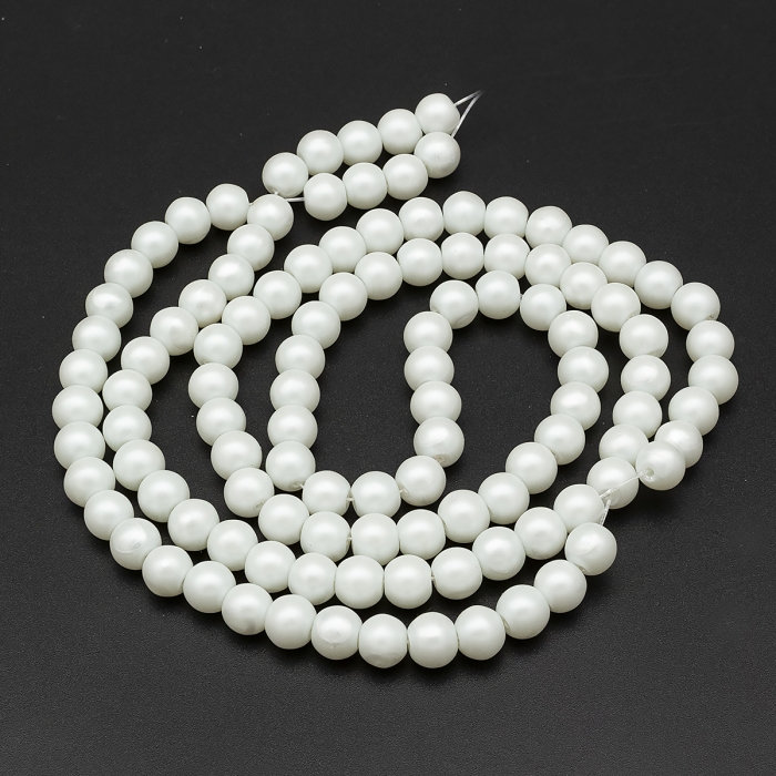 Жемчуг Бусины Стеклянные, Матовые, Круглые, Цвет: Белый №1, Размер: 8мм, Отв. 1мм, около 100шт/80см/нить, (УТ100026498)