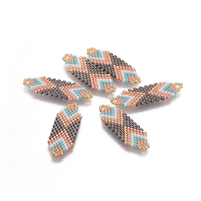 MIYUKI TOHO Японский Бисер Коннектор, Ручная Работа, Ромб, Цвет: Микс, Размер: 35-36.5x12.5x2мм, Отв-тие 2х3мм, (УТ100026523)