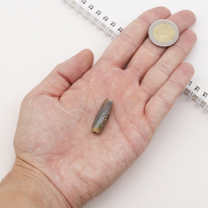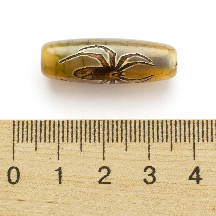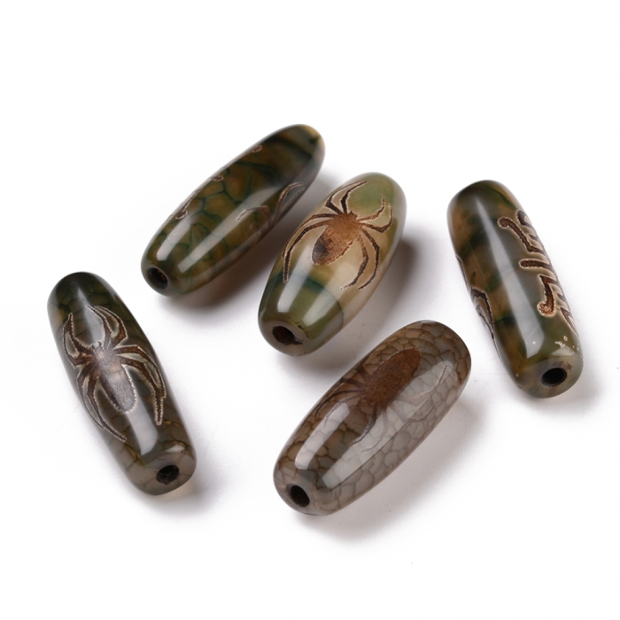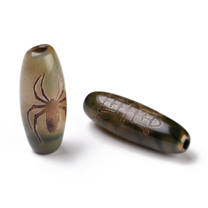 Бусины Натуральный Агат Дзи Долголетие и Паук Овальные, 28-32x10-12мм, Отверстие 1.5мм, (УТ100026583)