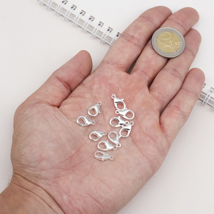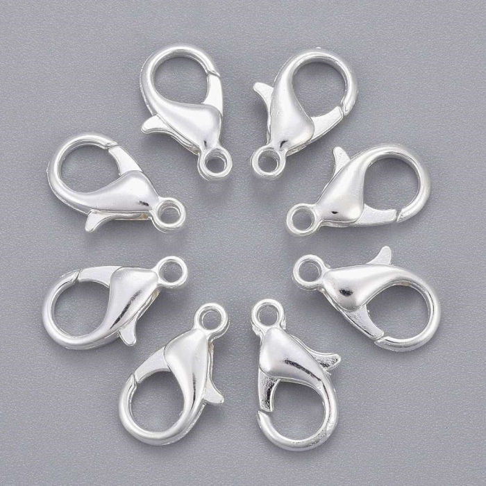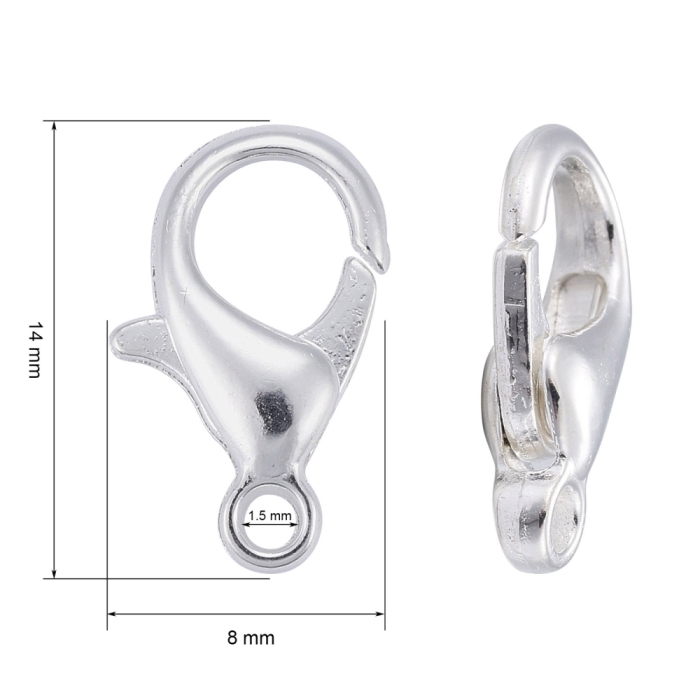 Застежка Карабин-Лобстер Цинковый Сплав, Серебро, 14х8мм, Отверстие 2мм, (УТ100026589)