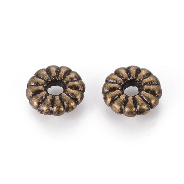 Бусины-Разделители Сплав Плоские Круглые, Античная Бронза, 7x2.1м, Отверстие 2мм, около 57шт/25г, (УТ100026595)