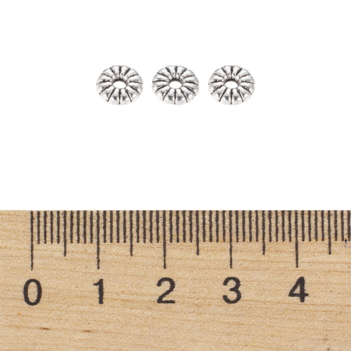 Бусины-Разделители, Бижутерный Сплав, Биконус, Цвет: Античное Серебро, Размер: 4х4.5мм, Отверстие 1мм, (УТ000004857)